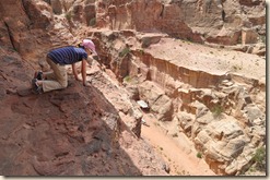 We were accompanied on our climb by Bedouins who live in a near by village and have little shops set up all over the sites. For the most part they are very helpful and a joy to talk with but they really like it when you purchase things from them. Most Bedouins are nomadic but this particular tribe makes a good living providing goods, directions around Petra and some interesting information for the tourist that come to Petra year round.